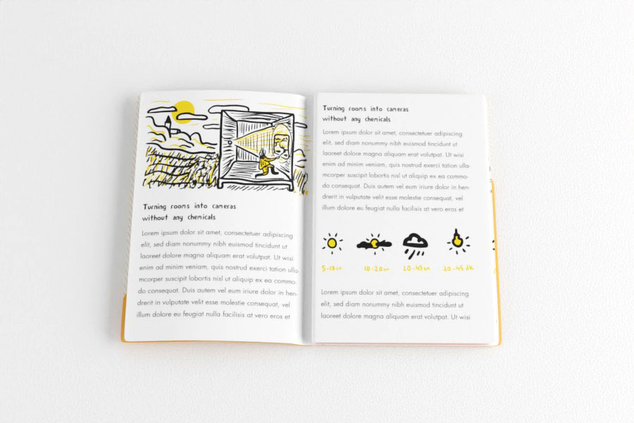 All the techniques mentioned in the booklets can be experimented with this camera. Readers also learn how to make their own cameras referencing the pinhole size and dimensions of their starter camera.